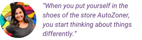 Similarly, Julie Acosta and her team at AutoZone were required to work in physical AutoZone stores once a month, pulling parts and working at the counter, to directly experience the limitations of their digital catalog and in-store lookup system.