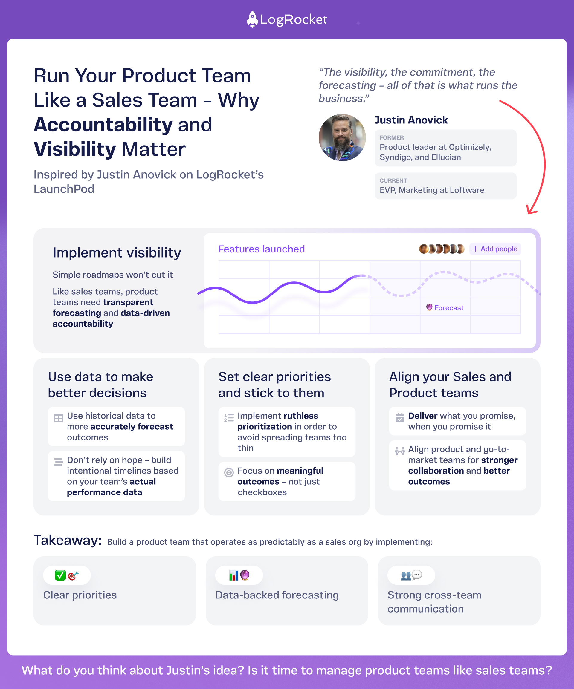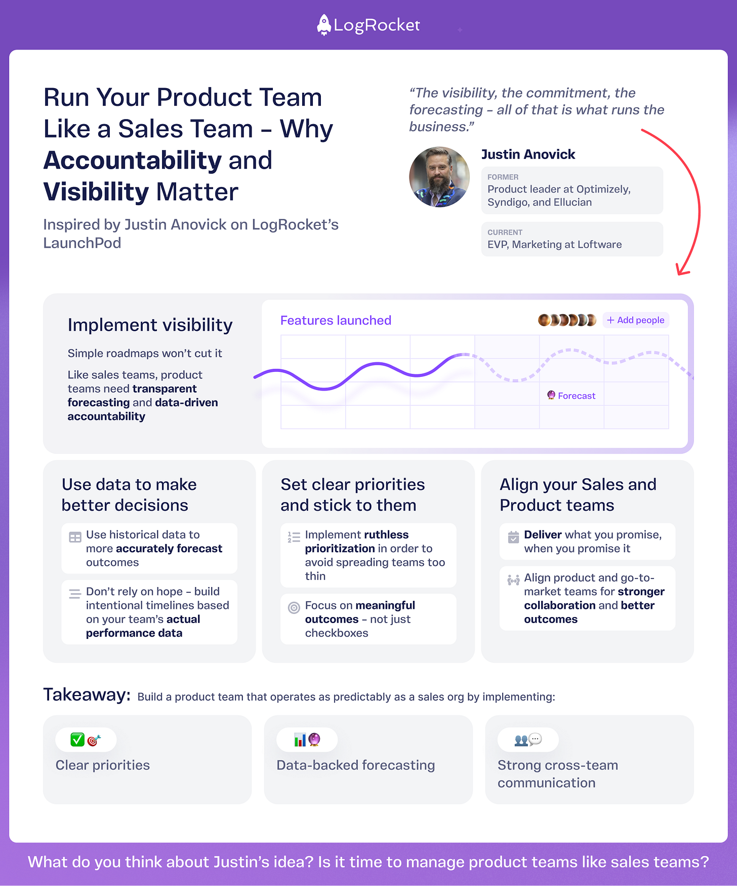 Great product teams deliver impact, not just features. Justin Anovick, former Product leader at Optimizely, Syndigo, and Ellucian (plus a background in sales), says the secret to building predictable and accountable product teams lies in borrowing a key playbook: run product teams like sales teams.